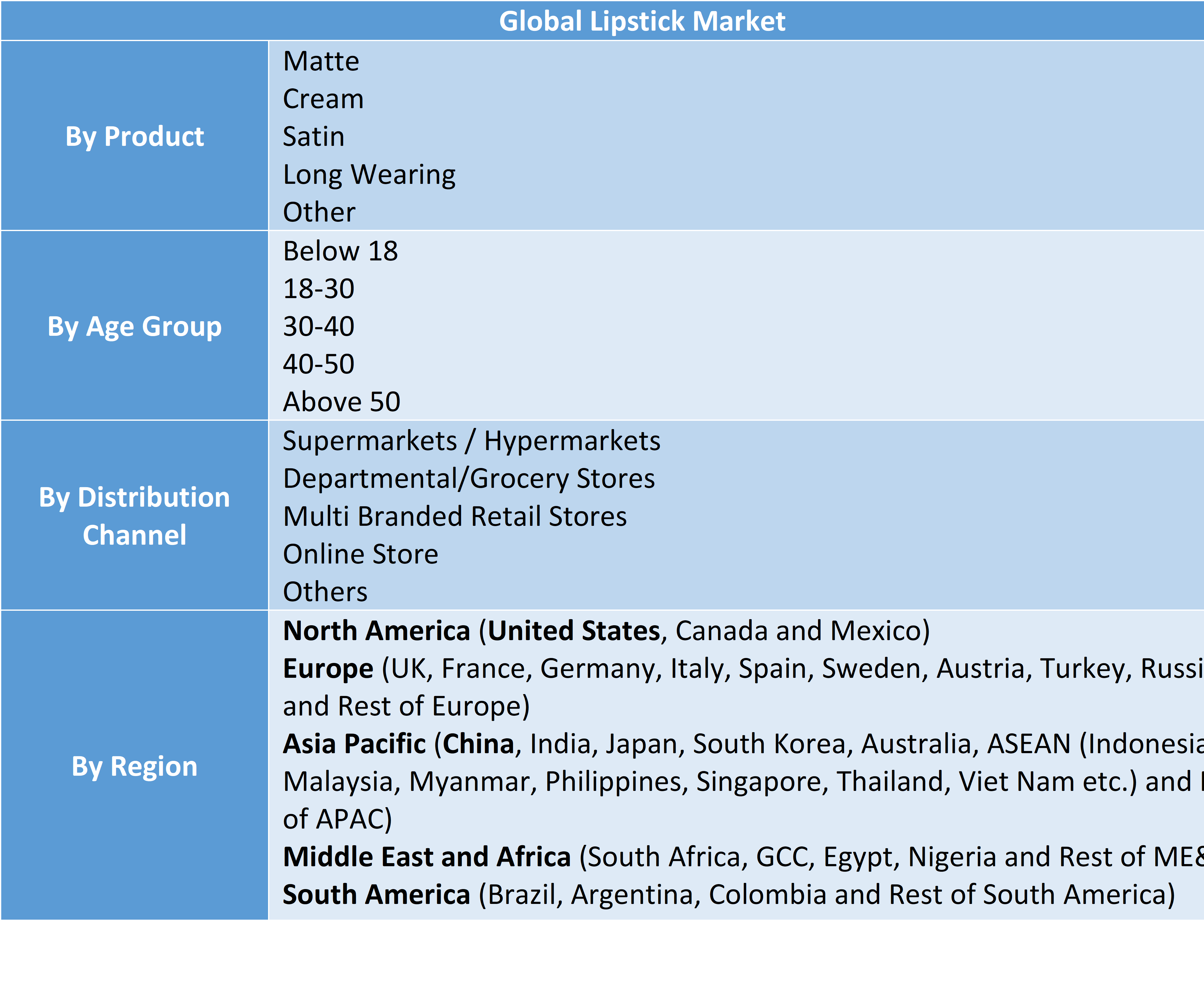 "E-commerce expansion, social media trends, and popularity of matte and cream lipsticks are redefining growth, size, and share of the Global Lipstick Market." ”