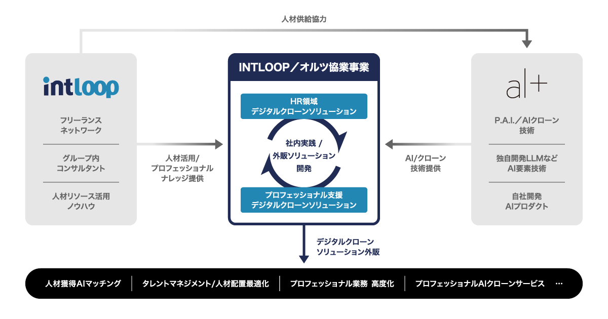Through the use of generative AI and Personal Artificial Intelligence (digital clones) in the HR and advanced white-collar work fields, alt and INTLOOP will contribute to improving the productivity of companies, human resources, and society as a whole.